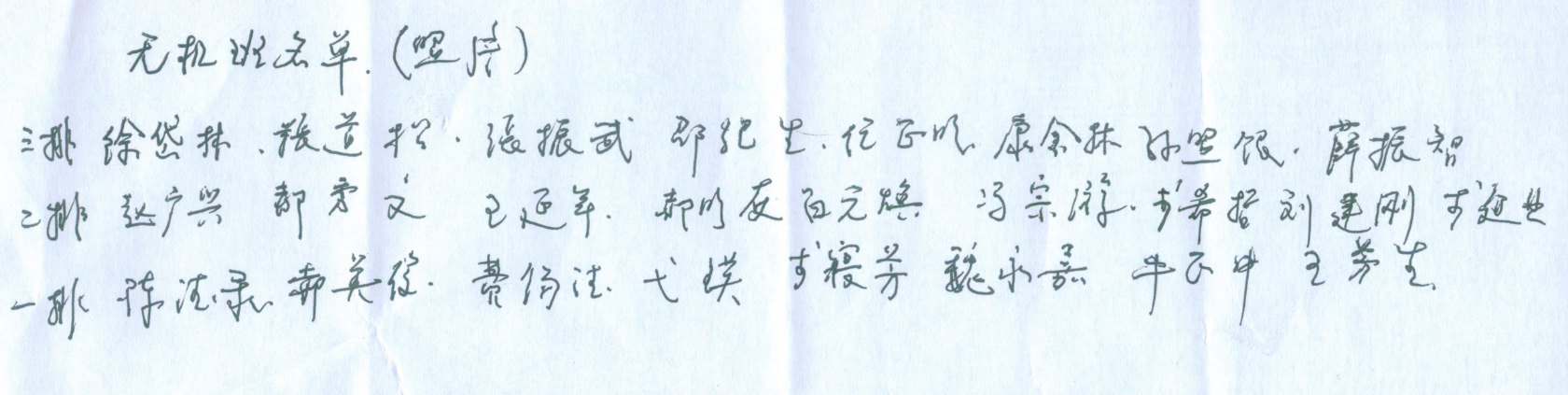 | 侯定远 | 男 | 四川江津 | 屈电 | 男 | 陕西华县 | 梁振中 | 男 | 陕西洋县 |