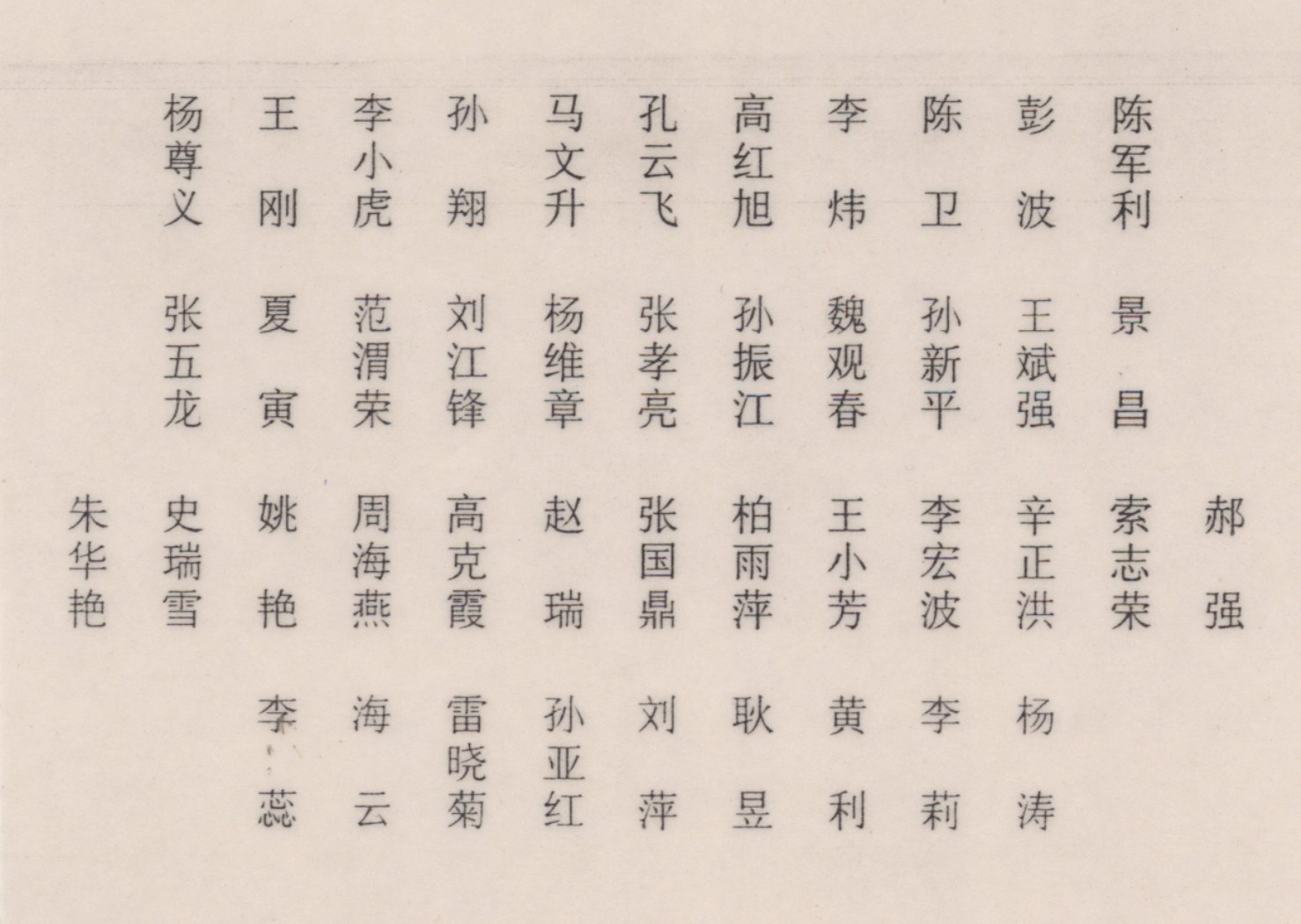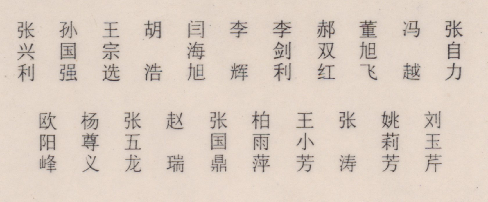 | 张胜利 | 男 | 山东兖州 | 杨智明 | 男 | 河南淇县 | 王永春 | 男 | 四川渠县 |
