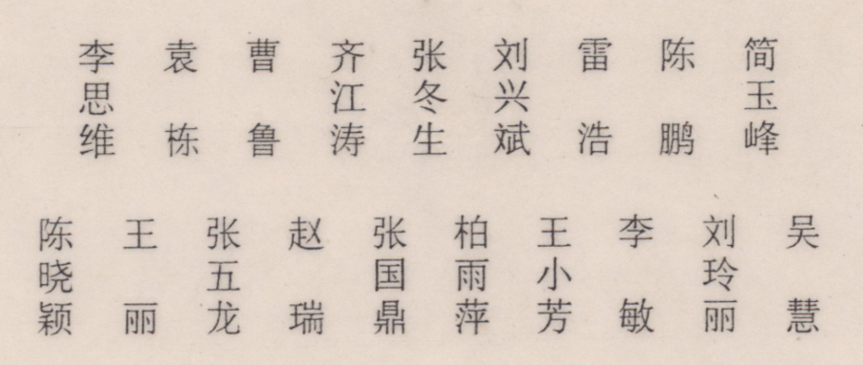 | 谭志玮 | 男 | 天津市 | 卫涛涛 | 男 | 陕西华阴 | 高秀华 | 男 | 山东高唐 |