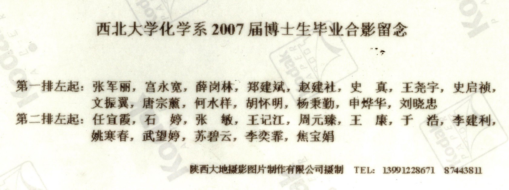 | 赵金哲 | 男 | 陕西兴平 | 周永平 | 男 | 陕西扶风 | 刘洁 | 女 | 陕西长安 |