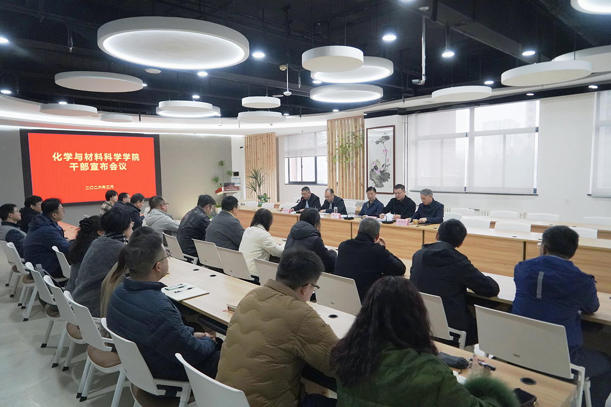 3月2日上午,化学与材料科学学院干部宣布会议在长安校区学院会议室举行。校党委书记蒋林,校党委组织部常务副部长周超出席会议,化学与材料科学学院党政班子成员,工会负责人、系部中心主任,科级干部及教师代表参加会议。会议由化学与材料科学学院院长栾新军主持。