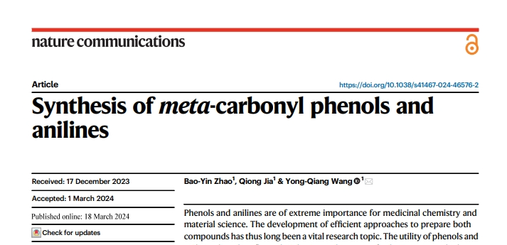 Bao-Yin Zhao, Qiong Jia, Yong-Qiang Wang*. Synthesis of meta-carbonyl phenols and anilines. Nature Communications. 2024, 15, 2415.