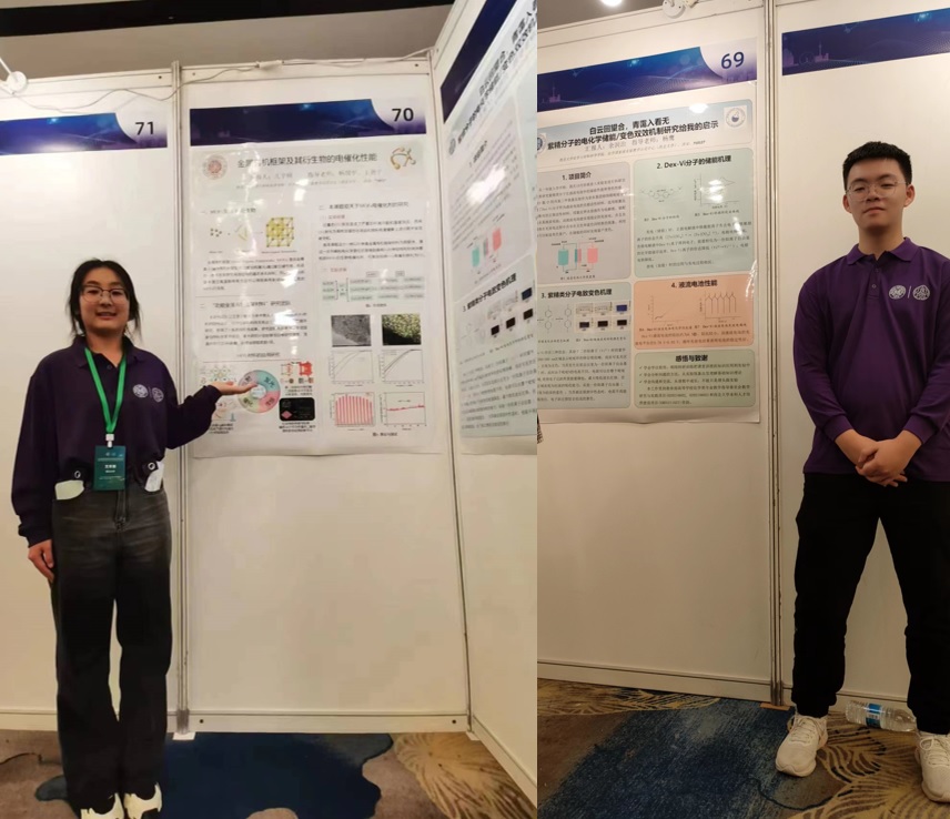 在同期举行的第七届全国化学类专业大学生科技活动交流会上,各高校本科生代表就本科阶段科研训练成果进行了口头汇报和墙报展示。我院2020级基地班翟奕蝶同学所作的题为《“全立以脯”—脯氨酸催化的不对称曼尼希反应走进实验教学》的报告得到了在场师生的肯定,获得大会优秀报告奖。2022级拔尖班兀宇颀和余润治同学参加了墙报展讲活动。经过专家评审和现场师生投票,余润治同学所作的墙报《“白云回望合,青霭入看无”紫精分子的电化学储能/变色双效机制研究给我的启示》获得优秀墙报奖。
