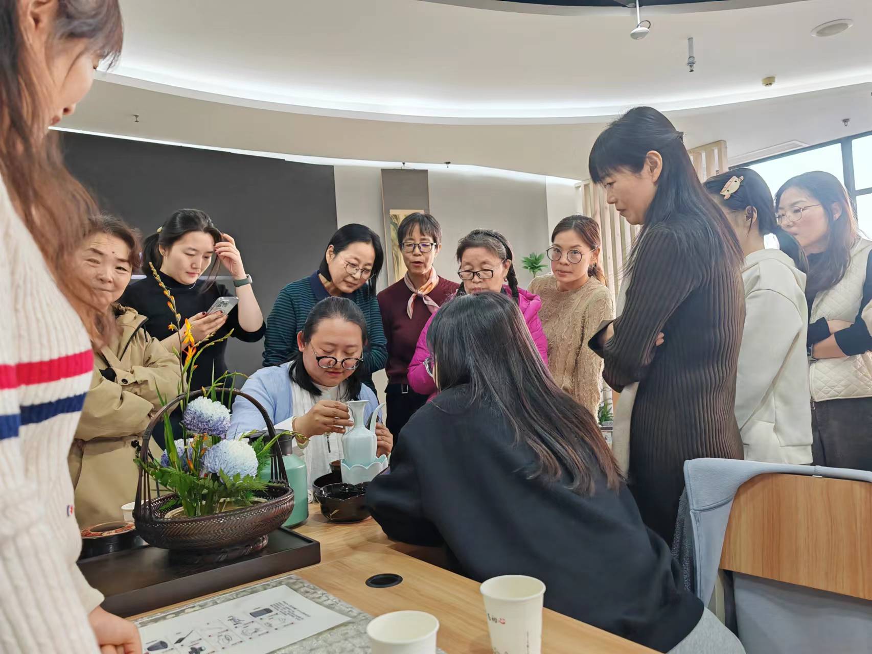 为进一步弘扬中国传统文化,培养教职工积极向上的文化价值观, 12月6日下午,我院工会在化材院主楼217智慧教室举办“宋代四艺”传统文化体验活动。本次活动邀请国家级茶艺师、插花师齐媛老师主讲。