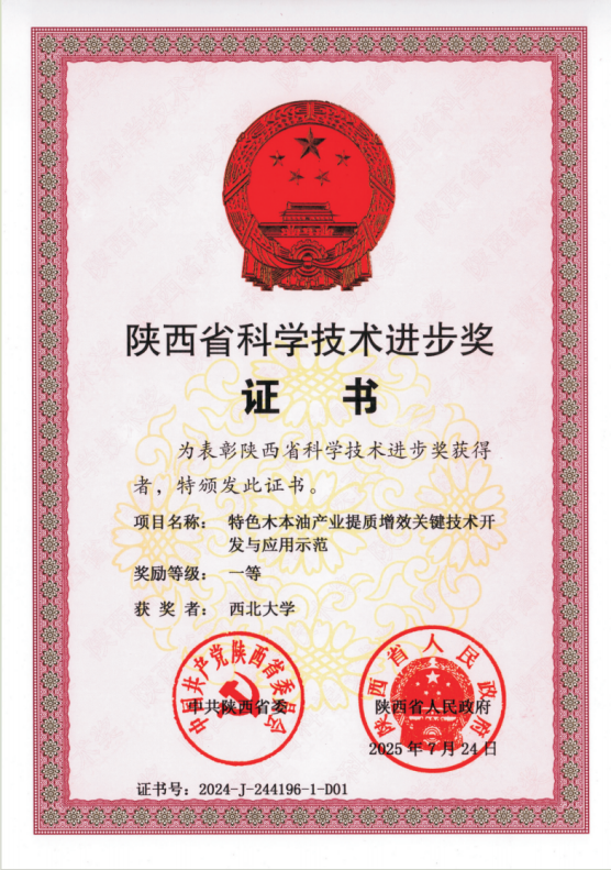 近日,陕西省人民政府下发了《关于2024年度陕西省科学技术奖励的决定》,以西北大学为第一完成单位,我院申烨华教授主持完成的“特色木本油产业提质增效关键技术开发与应用示范”获科学技术进步一等奖。
