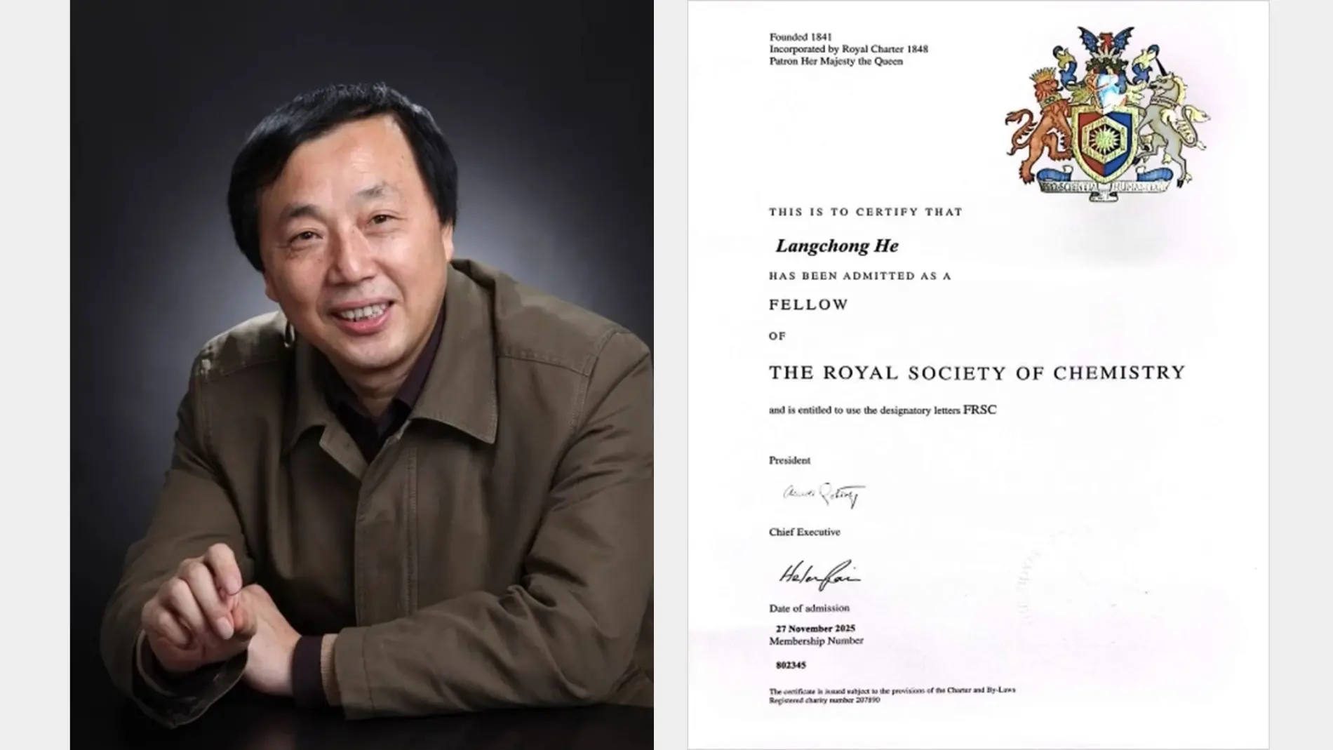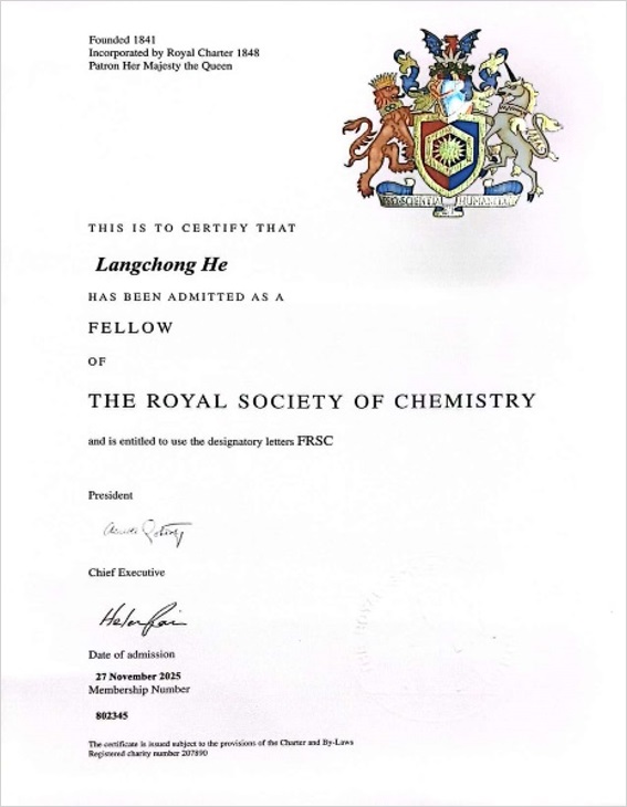 英国皇家化学学会(Royal Society of Chemistry)成立于1841年,是国际上最具影响力的学会之一。学会每年遴选英国及国际上在化学科学研究领域取得杰出成就和为推动化学科学发展做出卓越贡献的科学家为其会士。